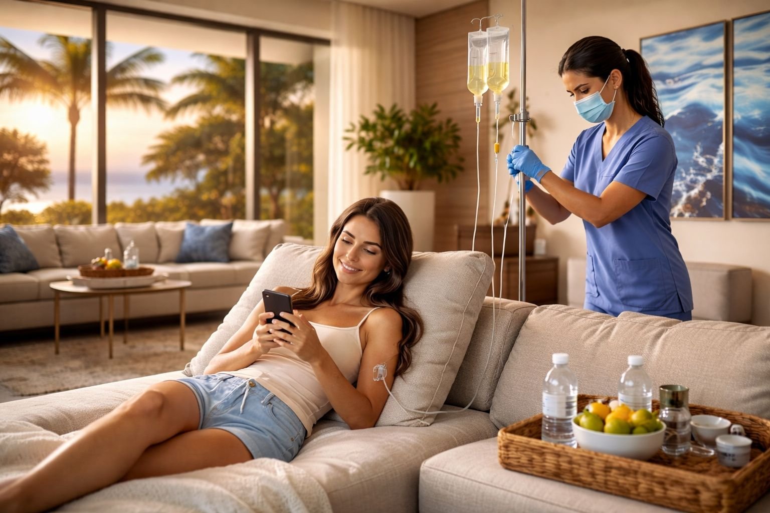 Our medical team provides professional IV therapy both in-clinic and as a mobile concierge service across Los Cabos. You can visit our medical facility or request IV therapy delivered directly to your hotel, villa, or private residence, allowing you to recover comfortably while our licensed professionals take care of everything.